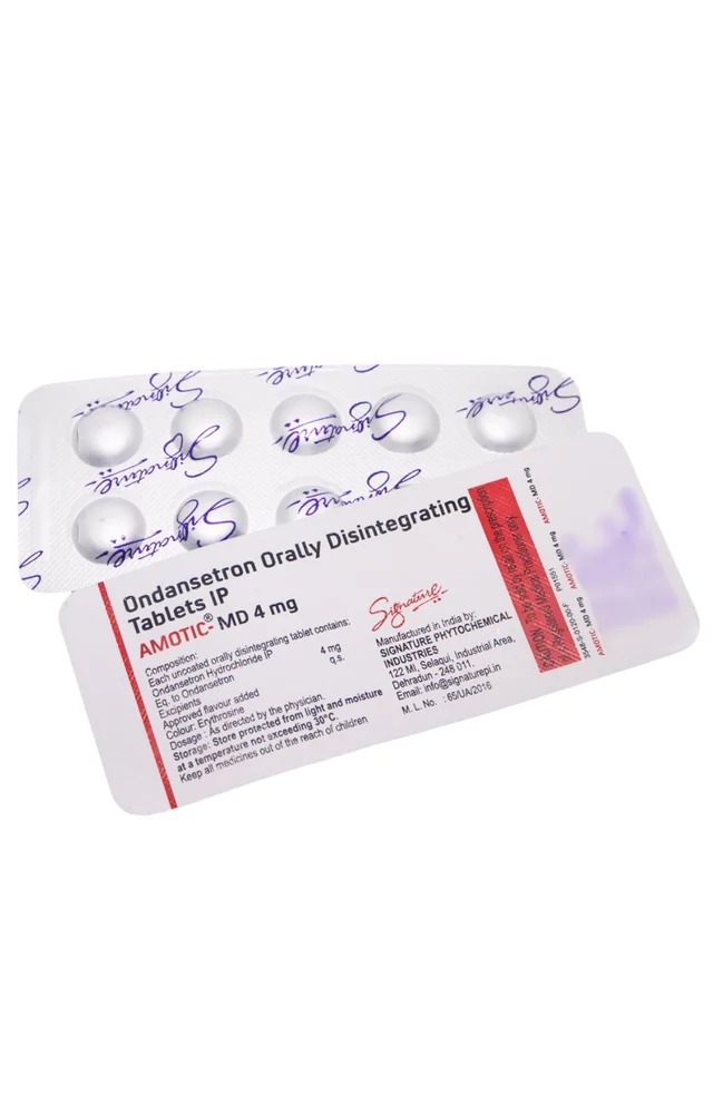 AMOTIC MD 4 mg contains Ondansetron, which is a 5-HT3 receptor antagonist. This medicine is used to prevent nausea and vomiting caused by Chemotherapy or radiotherapy.