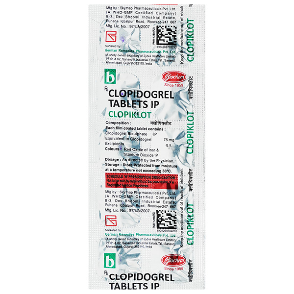CLOPIKLOT (Clopidogrel 75 mg) is an antiplatelet medicine. It works by preventing platelets in your blood from sticking together to form clots.
