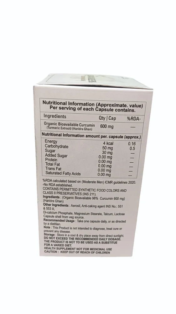 CURCUMIN is a natural compound found in turmeric (Curcuma longa). It has anti-inflammatory, antioxidant, and potential anticancer properties. This medicine is used as a dietary supplement to support joint health, reduce inflammation, aid digestion, and support overall immune function.