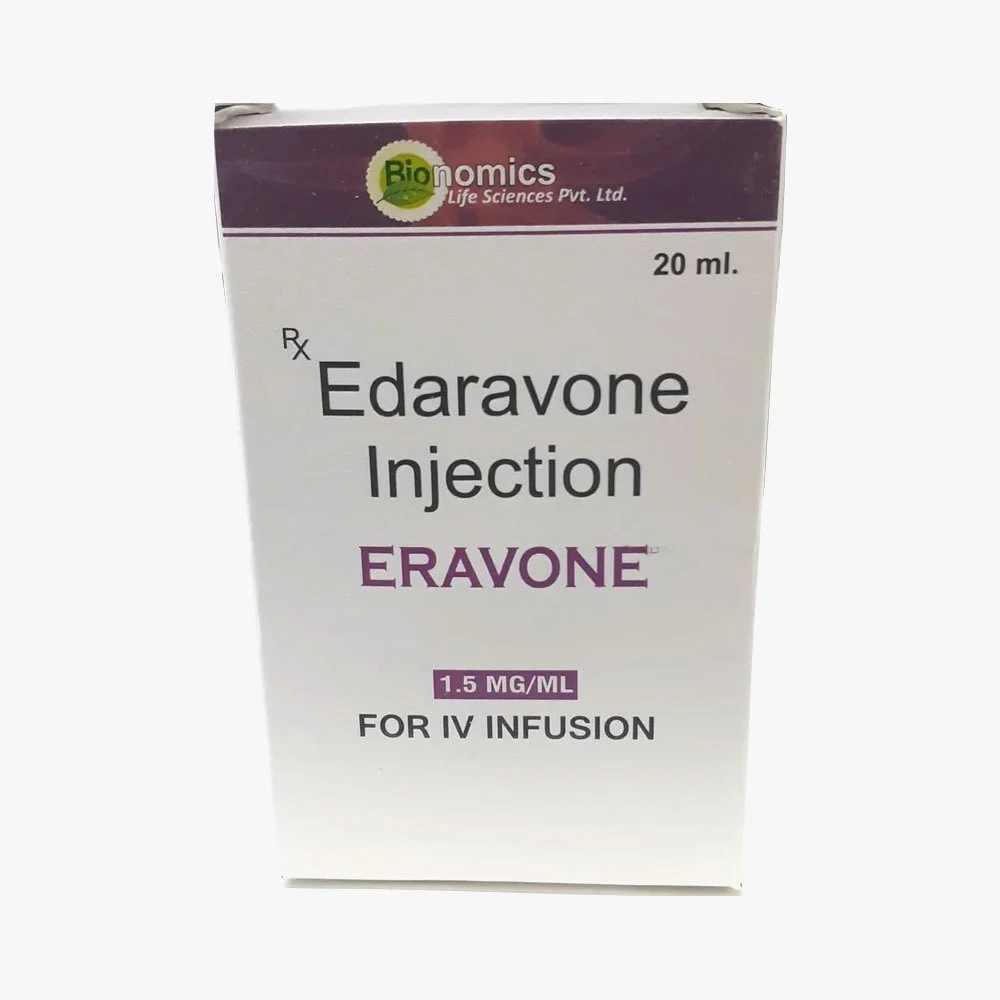 ERAVONE (Edaravone) is a medication that acts as a free radical scavenger (antioxidant). It is used in the treatment of amyotrophic lateral sclerosis (ALS), a progressive neurodegenerative disease that affects nerve cells in the brain and spinal cord. It helps slow down the decline in physical function in ALS patients. In some cases, it may also be used for acute ischemic stroke, to help reduce brain damage due to lack of oxygen.