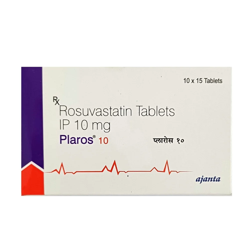 PLAROS 10 mg contains Rosuvastatin, which is a statin (HMG-CoA reductase inhibitor). This medicine is used to lower LDL (bad cholesterol) and triglycerides, and to raise HDL (good cholesterol). It helps reduce the risk of heart attack, stroke, and other cardiovascular complications, especially in patients with high cholesterol, diabetes, high blood pressure, or family history of heart disease.