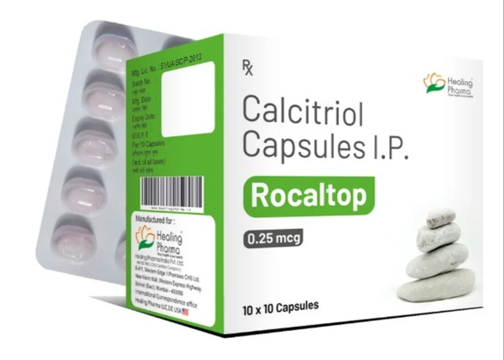 ROCALTOP 0.25 mcg Capsule contains Calcitriol, the active form of Vitamin D3. It helps the body absorb calcium and phosphate from the gastrointestinal tract. This medicine is used to treat or prevent low calcium levels, hypocalcemia, chronic kidney disease-related mineral bone disorder (CKD-MBD), rickets, osteodystrophy, and hypoparathyroidism.