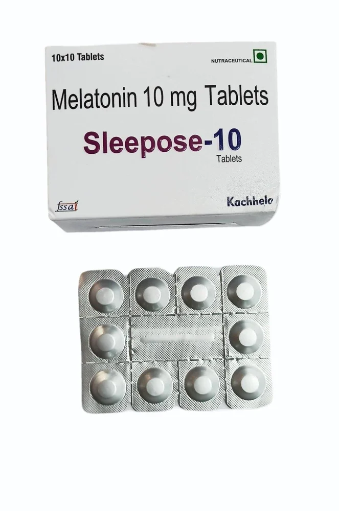 SLEEPOSE (Melatonin 10 mg) is a man-made version of a natural hormone that your body produces to regulate sleep-wake cycles (circadian rhythms). It is used to treat sleep disorders such as insomnia, jet lag, delayed sleep phase disorder, or other conditions that cause disrupted sleep patterns.