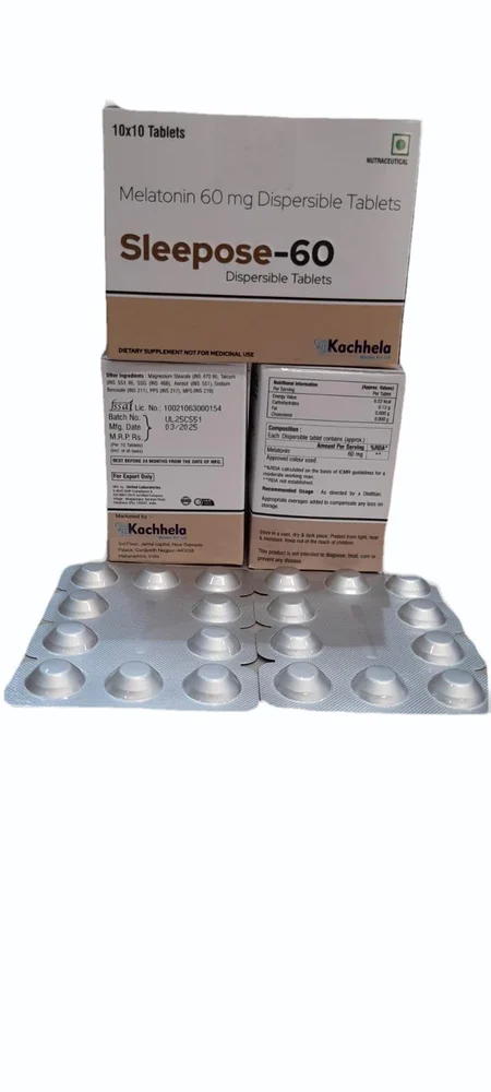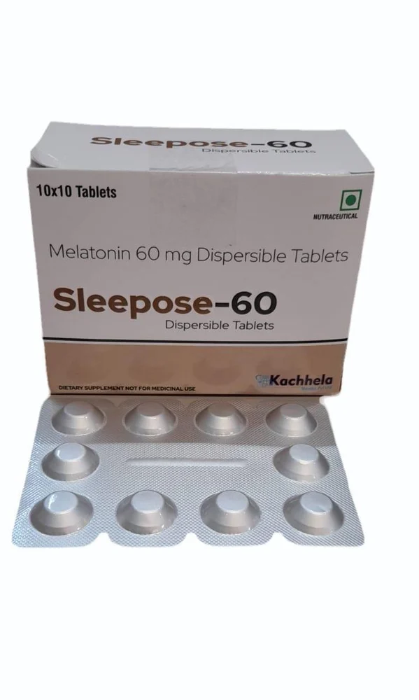 SLEEPOSE (Zopiclone 60mg) is a sedative-hypnotic medication used to treat insomnia (difficulty falling asleep or staying asleep). It helps you fall asleep faster and stay asleep longer. It works by acting on brain chemicals to produce a calming effect.