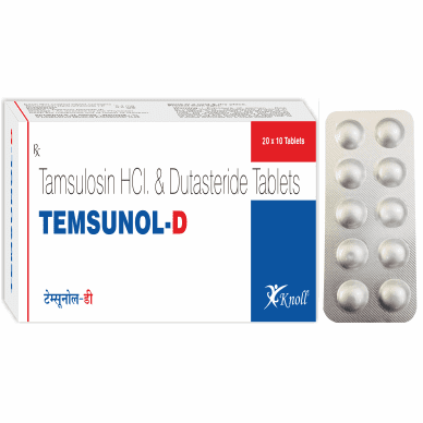 TEMSUNOL-D Tablet is a combination of Tamsulosin (an alpha-blocker) and Dutasteride (a 5-alpha-reductase inhibitor). This medicine is used to treat benign prostatic hyperplasia (BPH) in men. It helps relieve symptoms like difficulty in urination, increased frequency, or urgency by relaxing the muscles in the prostate and bladder and shrinking the enlarged prostate over time.
